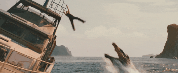《重生》的前半段似乎也在酝酿后面更深刻的冒险,但明亮的画面还是让电影的“海战”安排,更像是杰森·斯坦森欢乐到有点蠢的《巨齿鲨》,就算本片意图要复制一点斯皮尔伯格《大白鲨》的影子,等级还是落差太大。