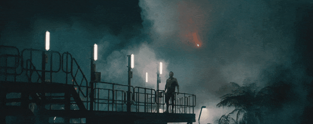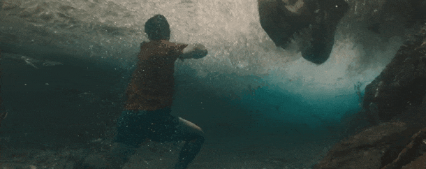 海战结束,电影有试图营造一种放松的气氛,但“有经验”的观众都知道这是下一场灾难开始前的留白,于是,意外再次发生,《重生》一行人落荒而逃上岸。
